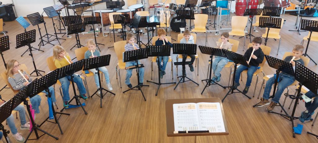 Seit 2010 haben Mädchen und Jungen ab 6 Jahren die Möglichkeit, eine Grundausbildung auf dem beliebten Einsteigerinstrument Blockflöte zu erhalten. Der Unterricht wird seit Oktober 2022 in kleinen Gruppen während der Randstunden des regulären Unterrichts in den Klassen 1 und 2 angeboten.